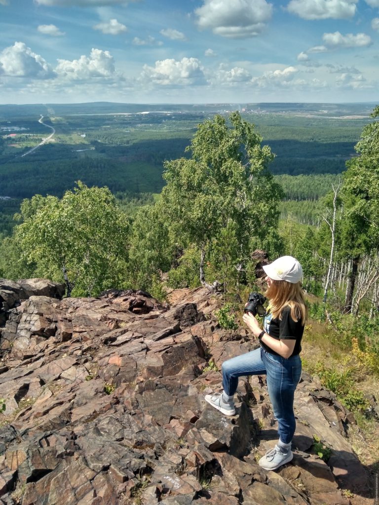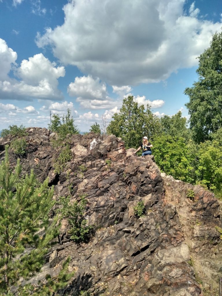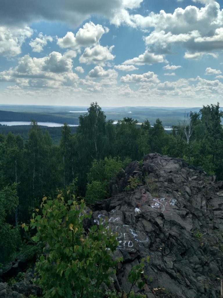 Мы подумали, почему бы в теплый солнечный денек не забраться на какую-нибудь гору, чтобы оттуда обозревать просторы. Самая высокая гора вблизи Екб — гора Волчиха (526 метров). Гора Волчиха имеет форму пирамиды с крутыми спусками. Гору отлично видно с Московского тракта. На нее мы поднимались впервые. Не одни мы такие умные были. Желающих в тот день хватало. Место интересное и многолюдное. Объяснение этому — гора расположена вблизи Ревды. Скорее всего, это местные так разнообразят свой досуг.