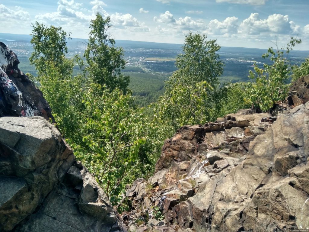 А что за другим забором я так и не поняла. Мы же прошли между этими двумя заборами в сторону живописных скал. Все усилия подъема оправдались великолепием вида на Ревду, Первоуральск, Екатеринбург.