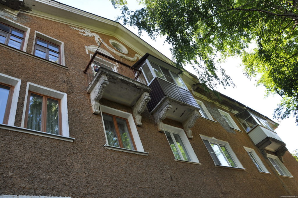 Напротив памятника находится самый длинный жилой дом в Ревде.