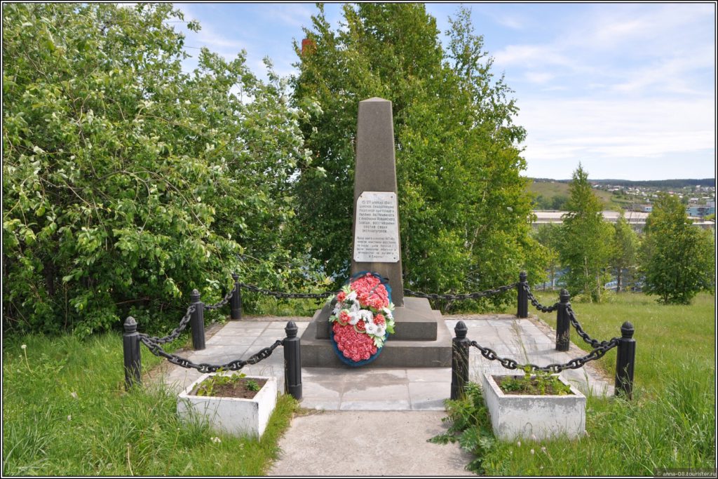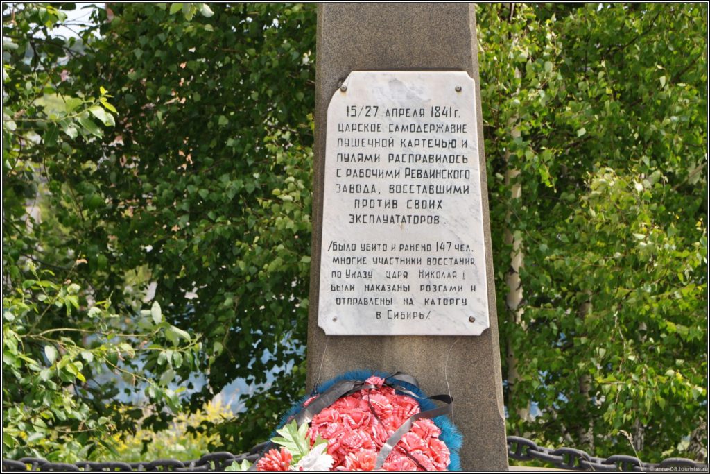 Еще один памятник связан с трагической страницей в истории Ревды — восстанием углежогов, которое произошло весной 1841 г.