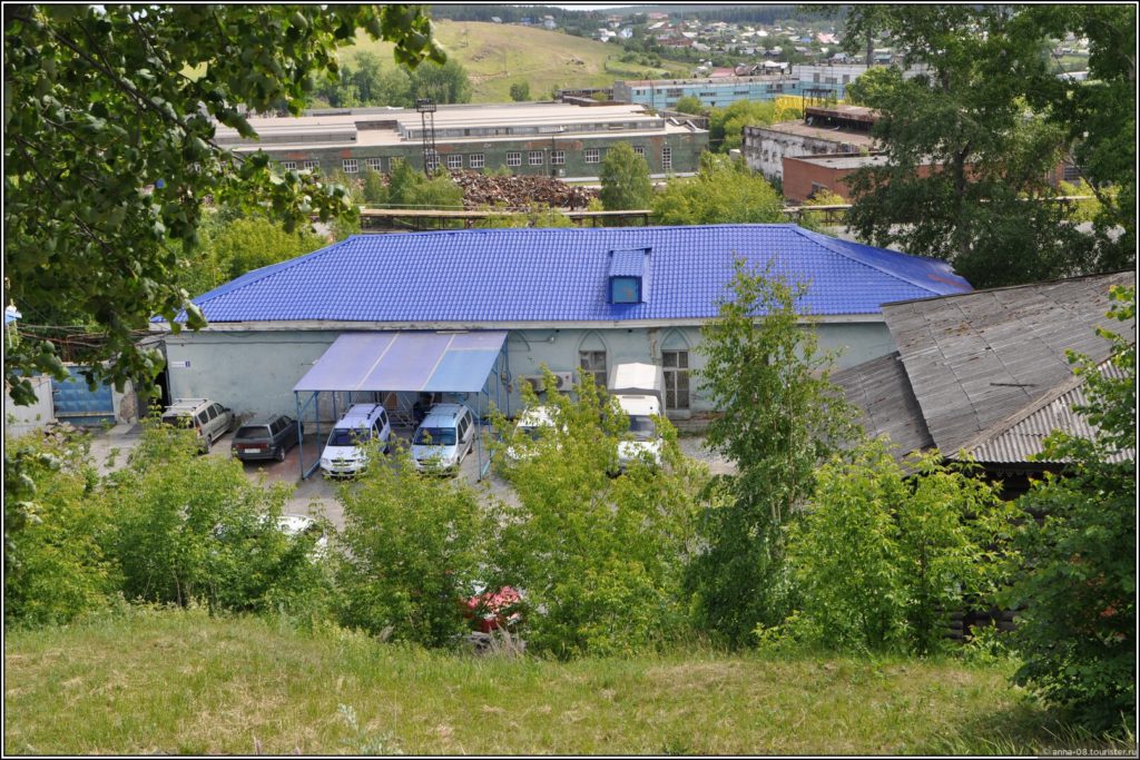 А мы поднимемся на гору Угольную, вот она — на снимке сверху, там много интересного. Обратите внимание на деревянный домик, стоящий справа за деревьями. Это дом управляющего Ревдинским заводом, построенный в 1900 году, уникальное здание. Сейчас состояние домика грустное, но мне сказали, что собираются восстановить.