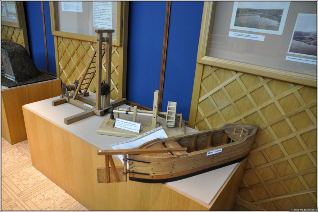 Интересно было увидеть макет барки, на которых по реке Чусовой сплавляли металл демидовских заводов в центральную часть страны.