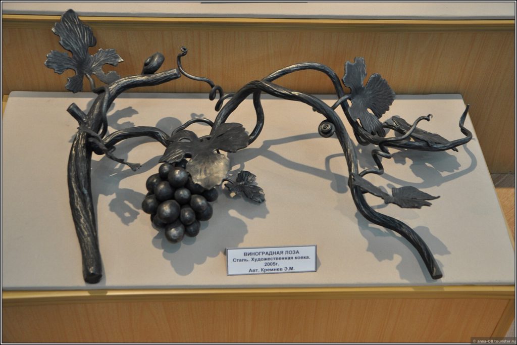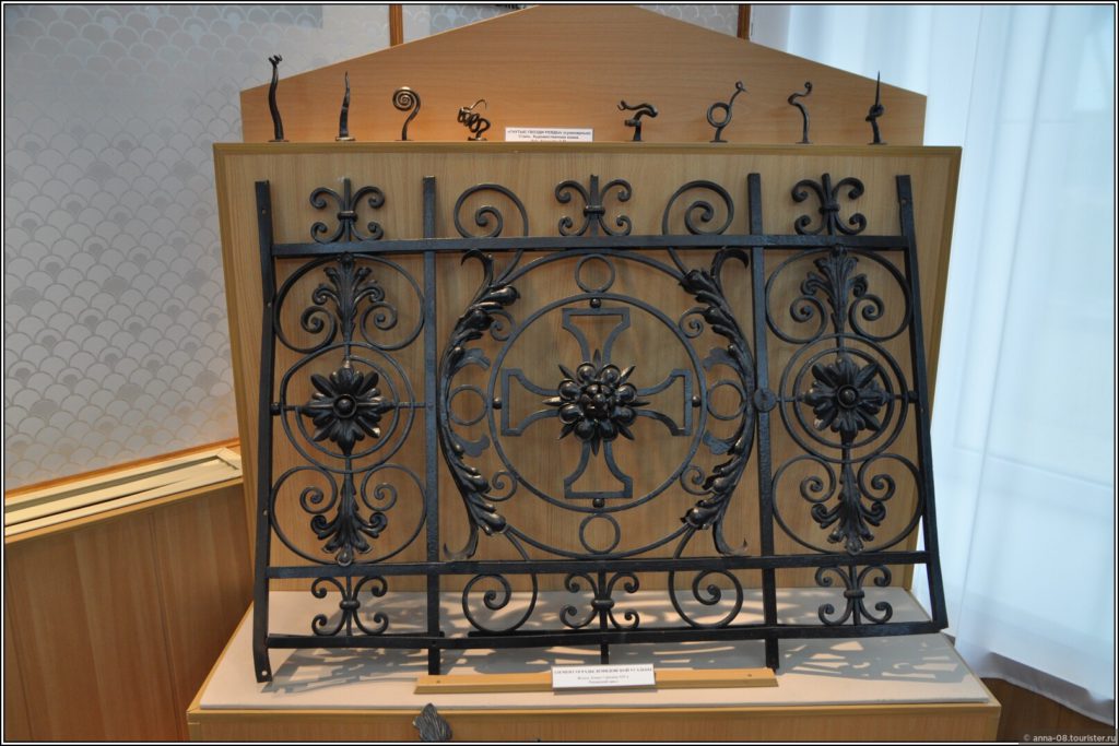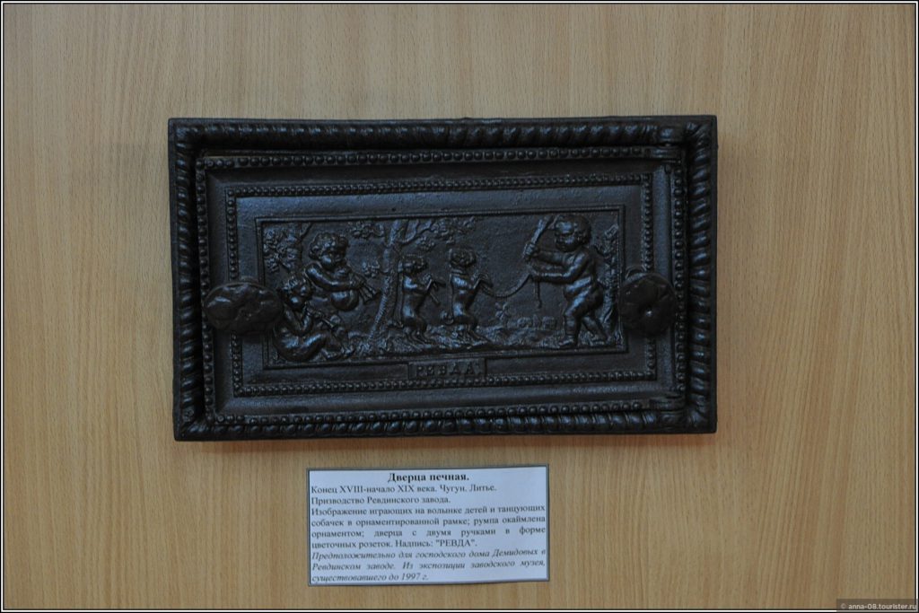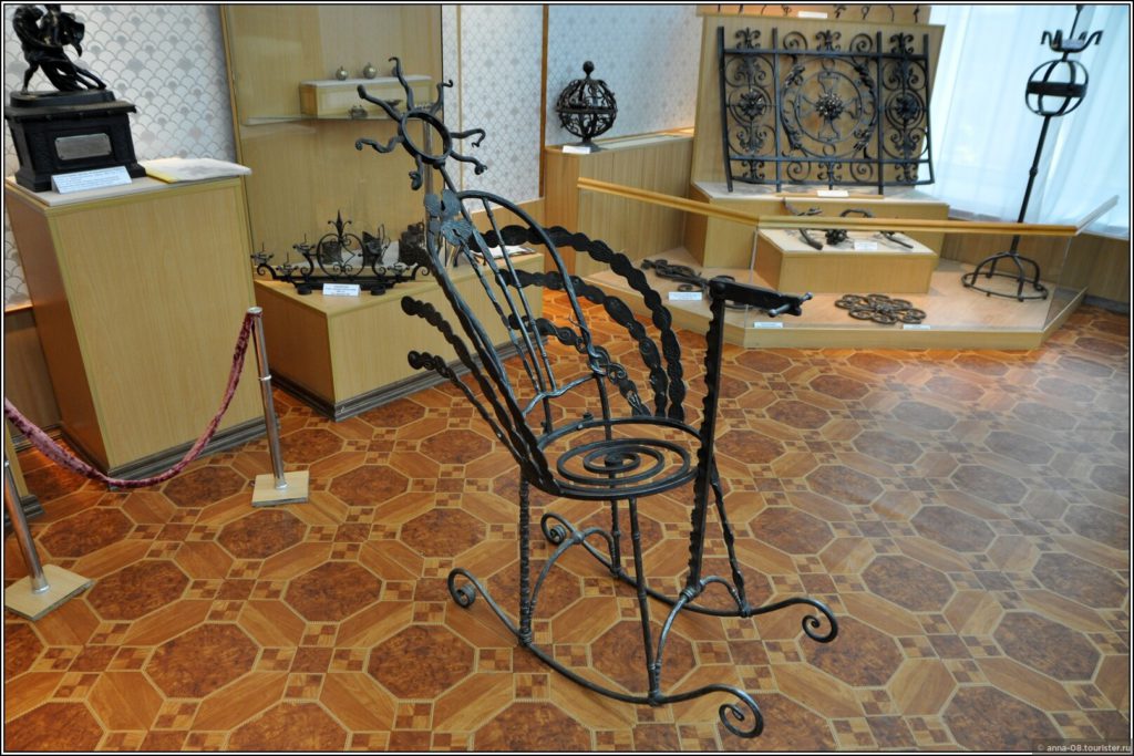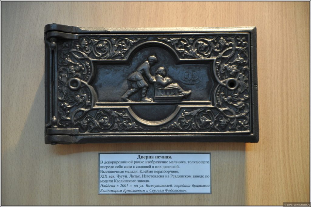 На стенде информация о существовавших в Ревде литейных мастерских и их владельцах — Н. И. Грудинине, А. А. Белоглазове, Д. И. Богомолове. На полках и на стенах — образцы изделий. Мне предлагали покачаться в чугунном кресле-качалке.