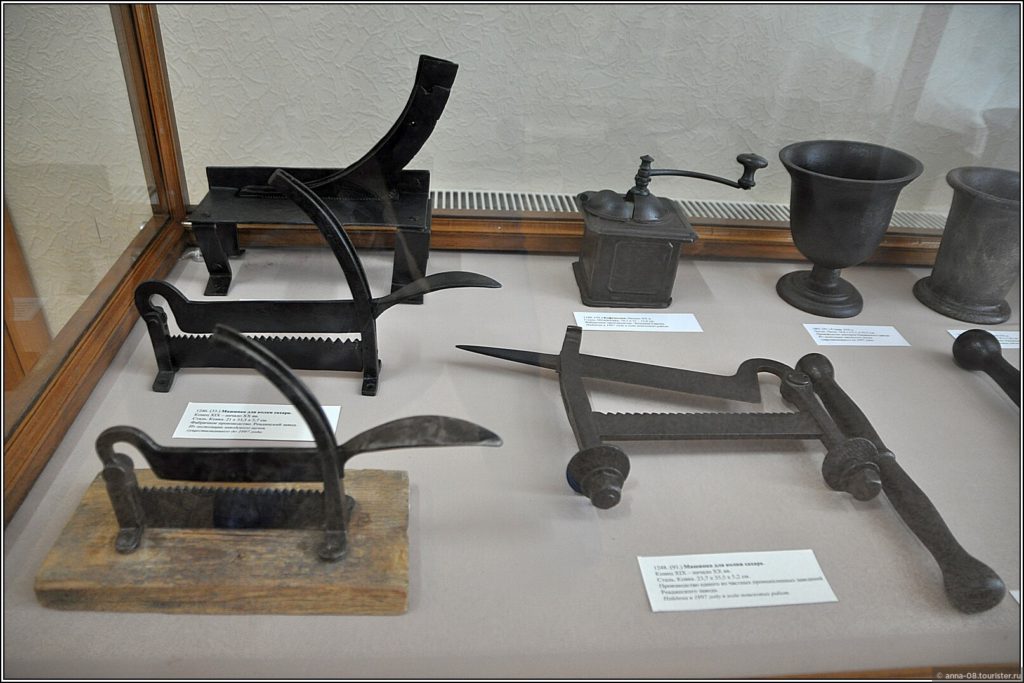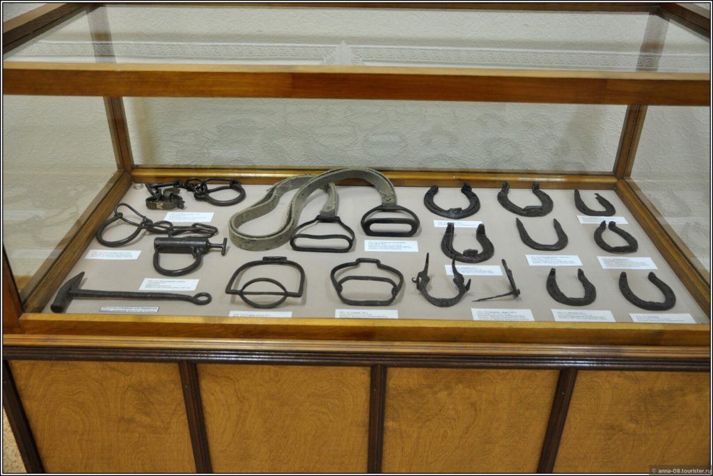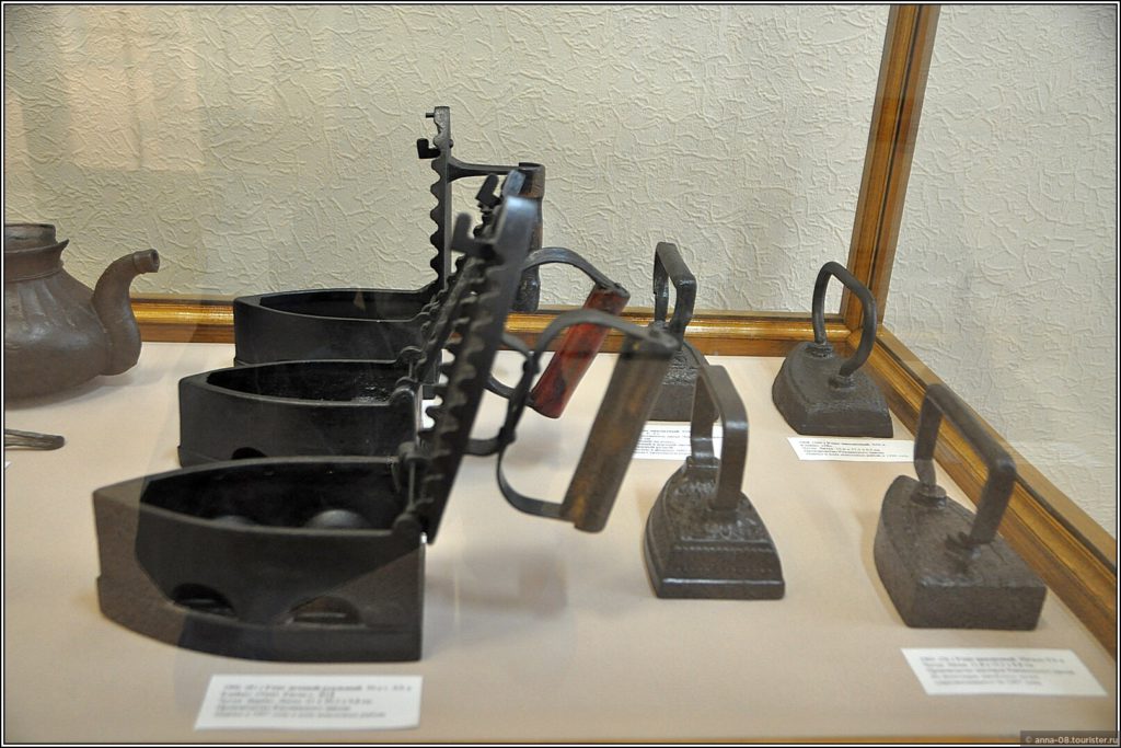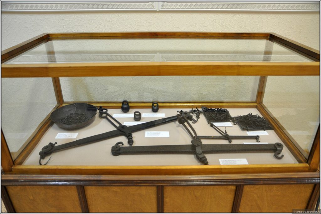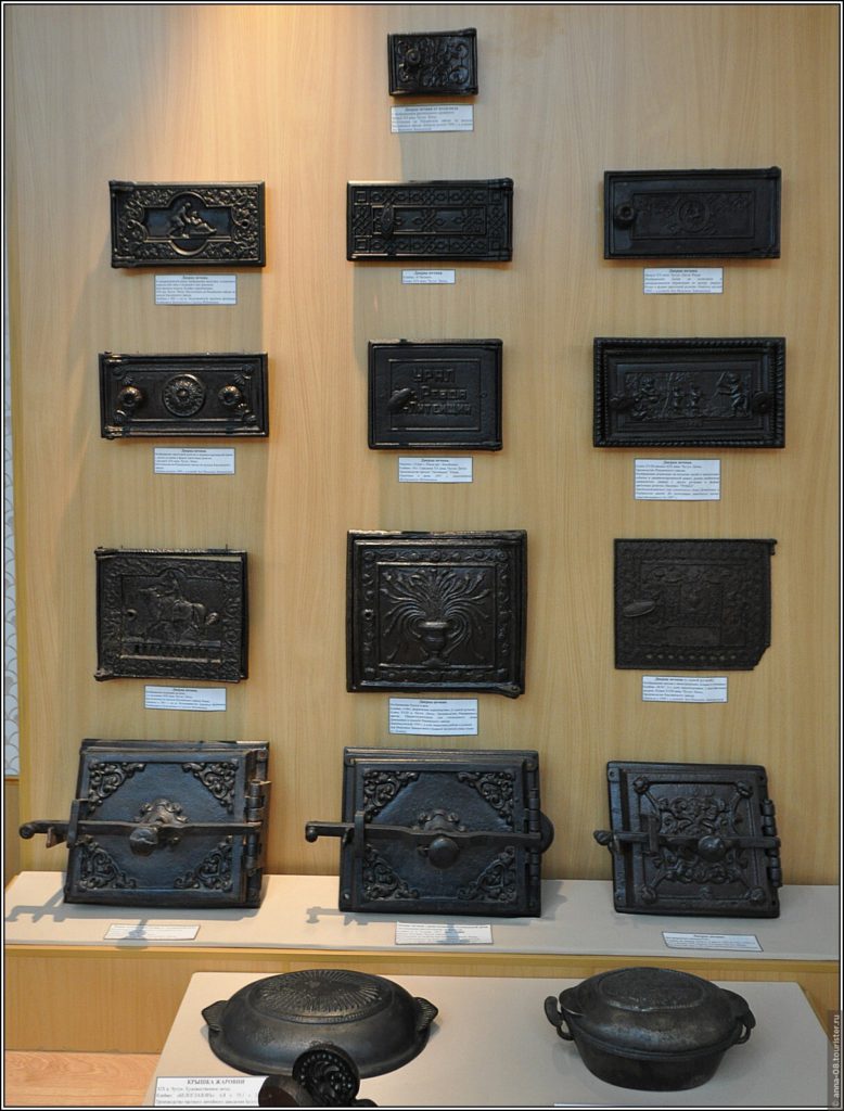 Понравилась коллекция изделий Ревдинского завода. Это в основном предметы быта из чугуна, изготовленные в XIX веке: различные сквороды, чугунки, ступки, весы, подковы. Некоторые изделия с первого взгляда непонятного предназначения, хорошо, рядом табличики лежат. Вы знаете, что в прошлые века уже были формы для выпечки и вафельницы?