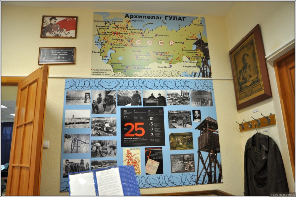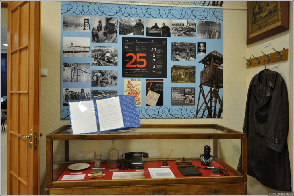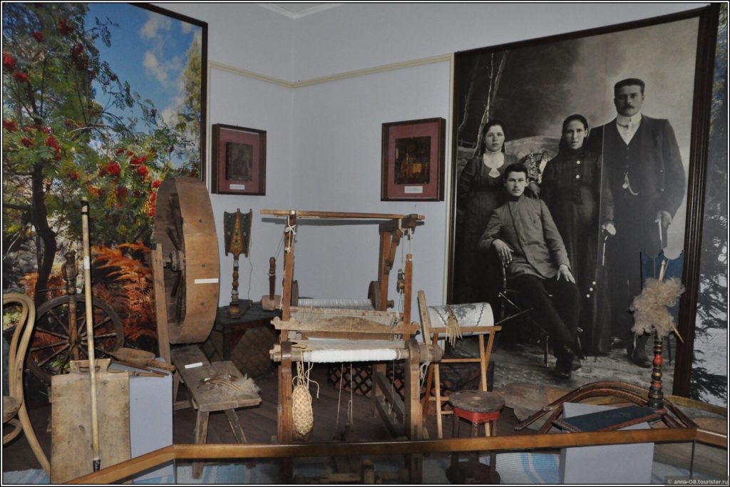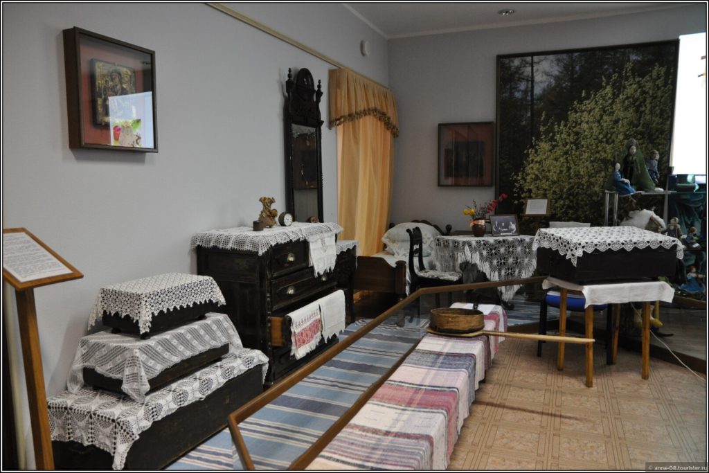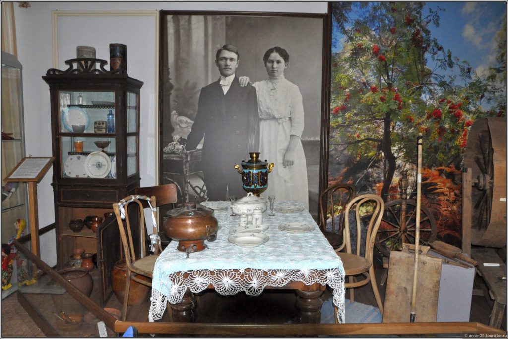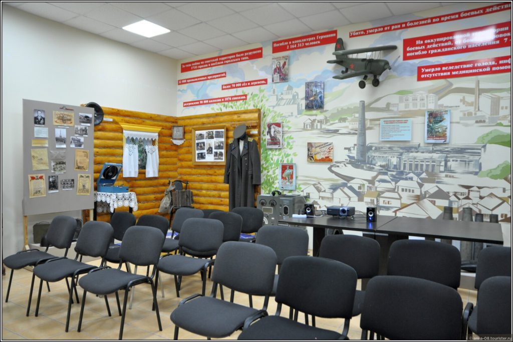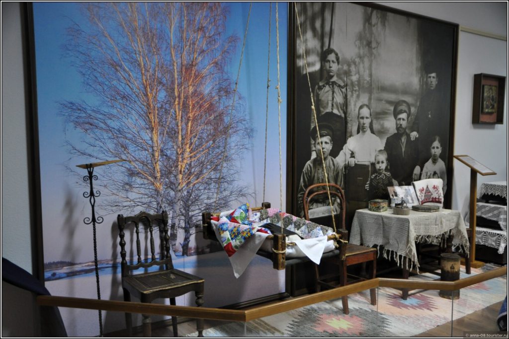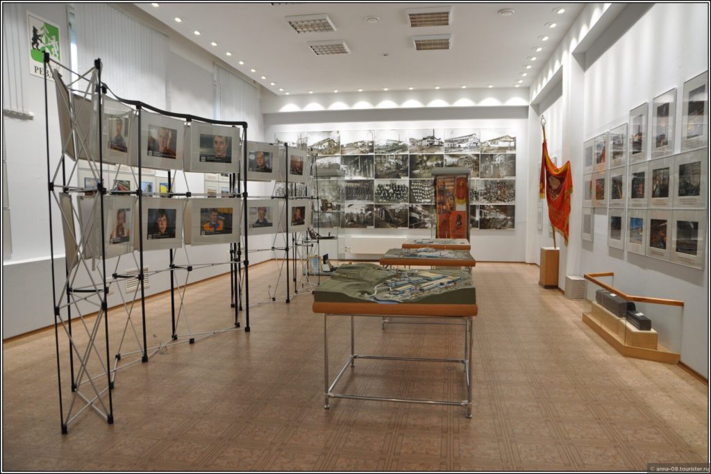Интересен зал с предметами быта работников завода и фотографиями реальных семей.