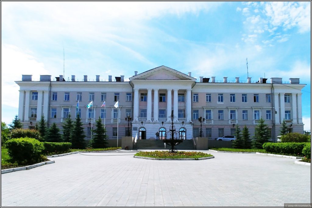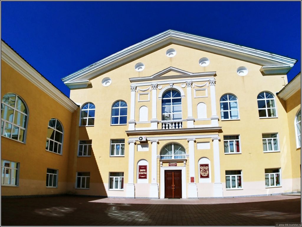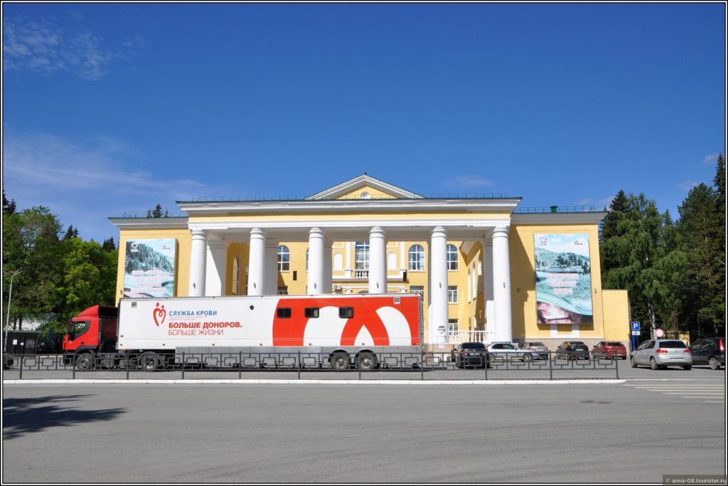 Неподалеку от дворца спортивного — Дворец культуры, главная концертная площадка города и центр его культурной жизни. Дворец красивый, его построили в 1954 году. Но с красивой фотографией мне не повезло, у дворца стояла огромная машина — передвижной донорский пункт.