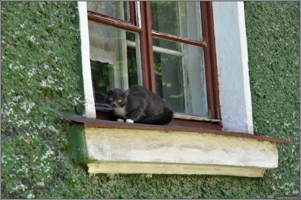 А здесь на подоконнике сидел кот, готовый убежать в любую минуту.