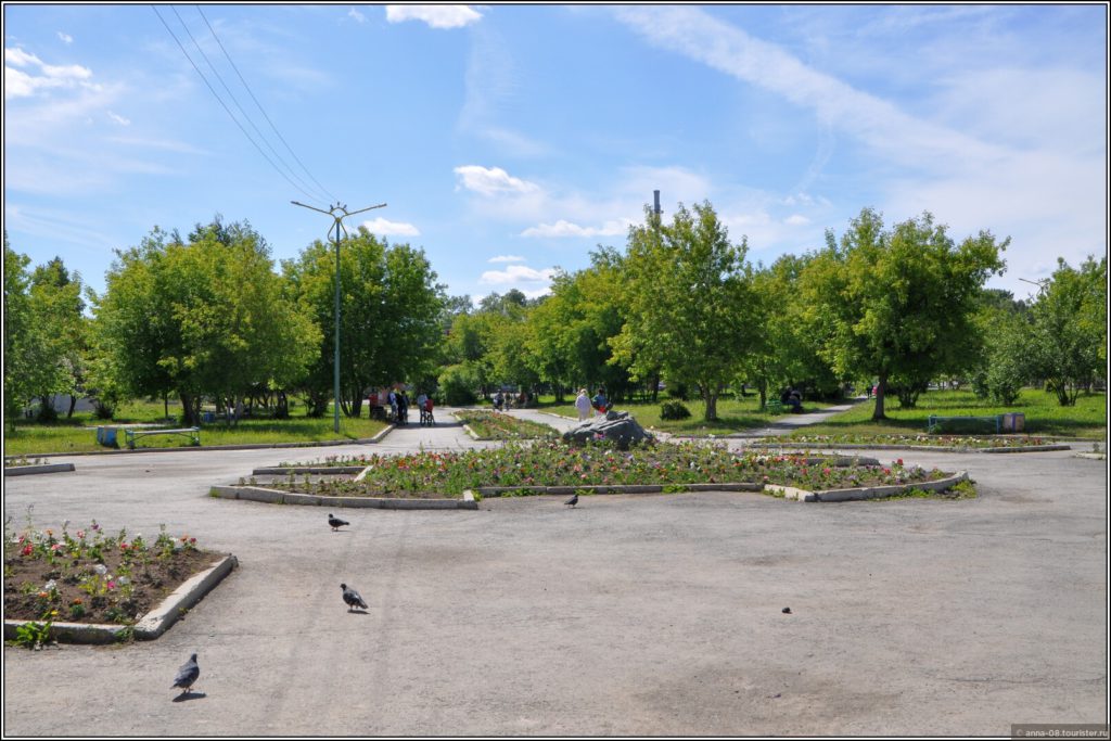 В Еланский парк я зашла уже на обратном пути, возвращаясь на автовокзал, немного отдохнуть на лавочке под кустом сирени. Бдительность притупилась, и я не подошла к камню в центре клумбы. А ведь это камень не простой, какие у нас есть практически во всех микрорайонах города. На этом камне есть табличка: «В память об основателе города Акинфии Демидове».